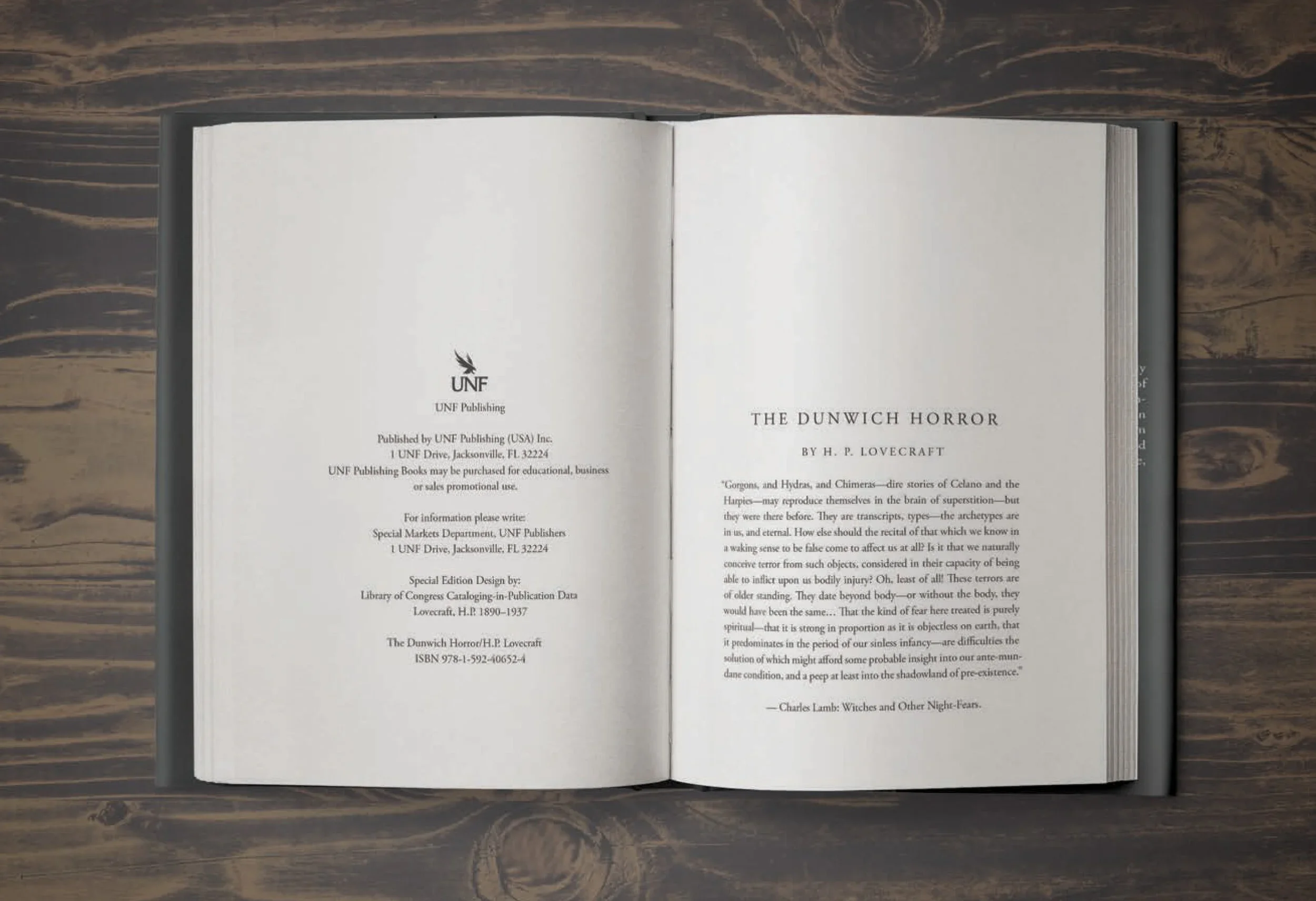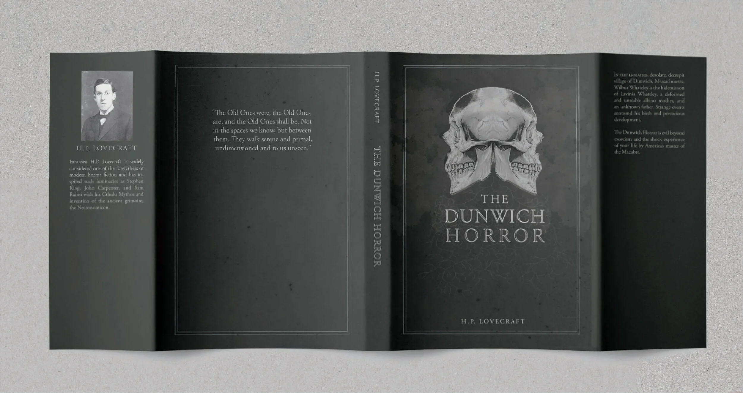 A dust jacket and typesetting design for “The Dunwich Horror”, a novel written by H.P. Lovecraft.